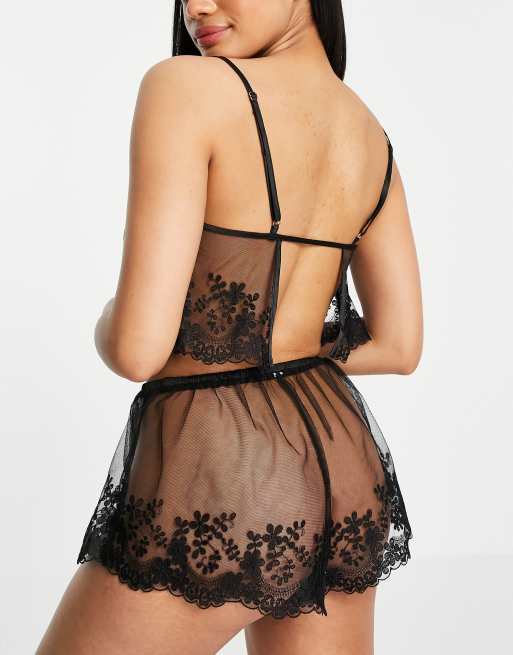 Sheer cami set. Mix and match this set with your favourite bras and bottoms or wear as a set for a luxurious look. You can also view a size chart on each product page or you can request a size guide via our online chat at any time. As cozy as they are sexy our easy to wear cami top and tap shorts have a loose fit thats flattering on every figure.